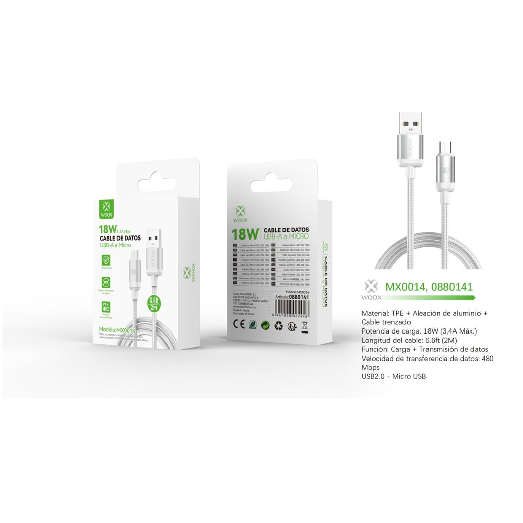 USB to Micro data cable 18W 2m-white - MX0014 BL