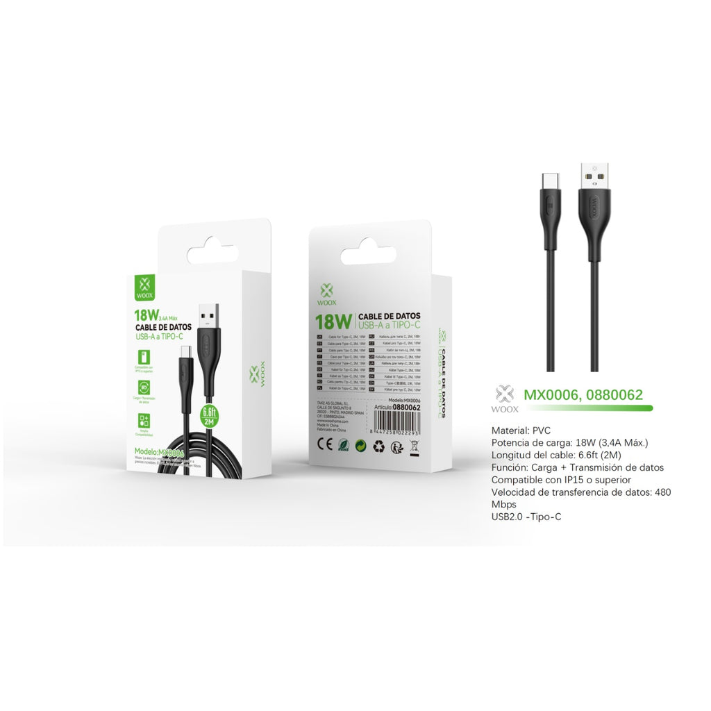 USB to Type-C data cable 18W 2m Black - MX0006 NE