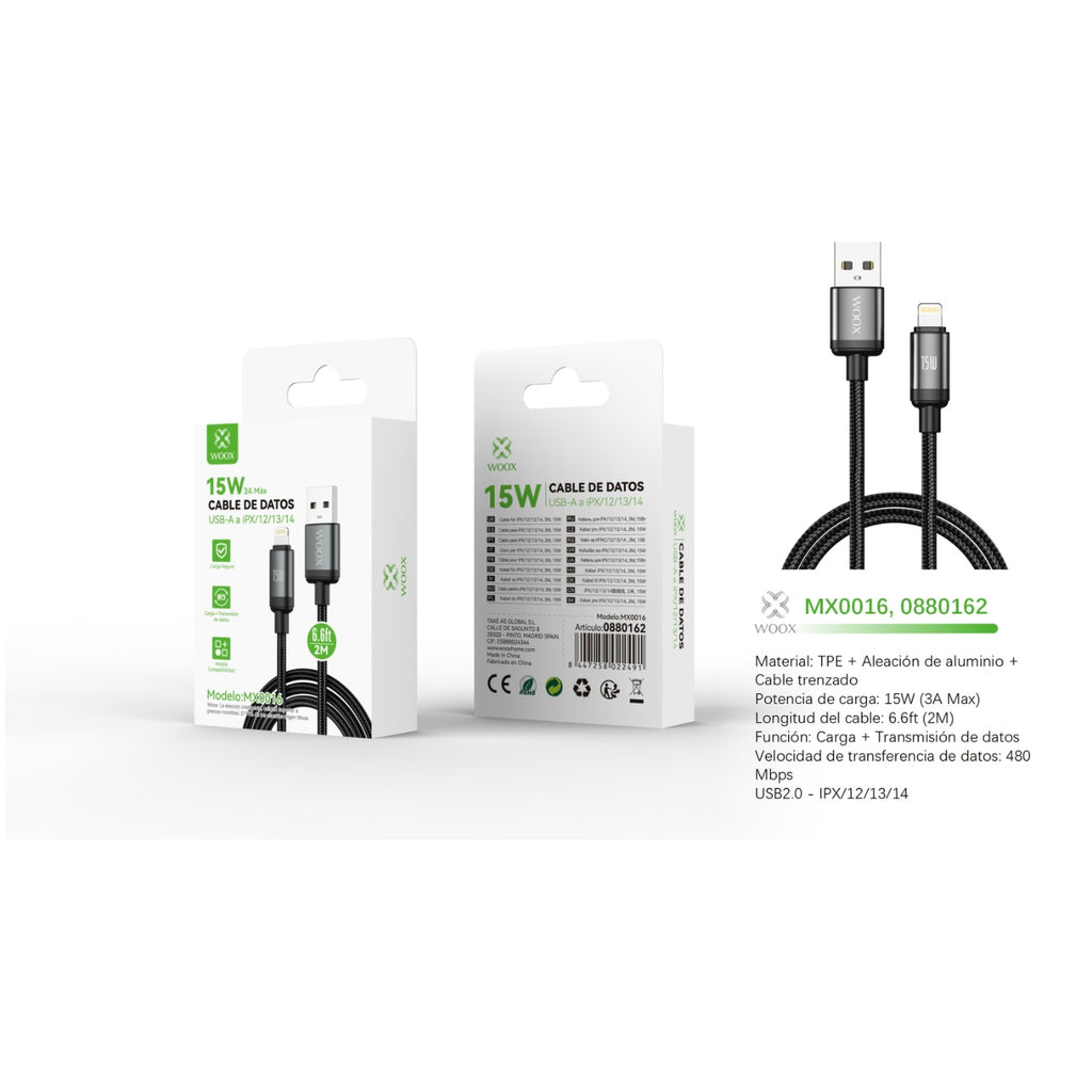 USB to Lightning data cable 15W 2m-black - MX0016 NE