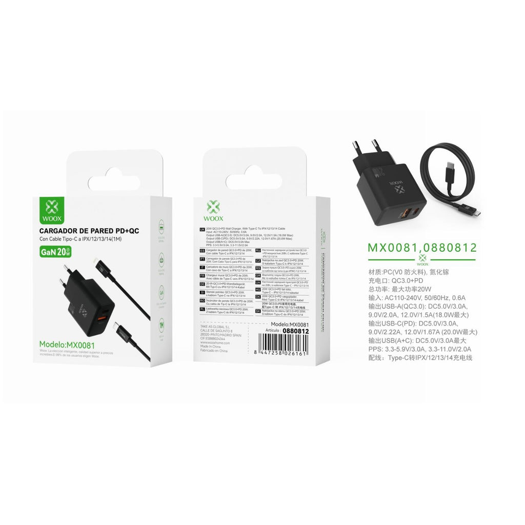 20 W UE QC+PD GaN wall charger with C-Lightning cable (black) - MX0081 NE