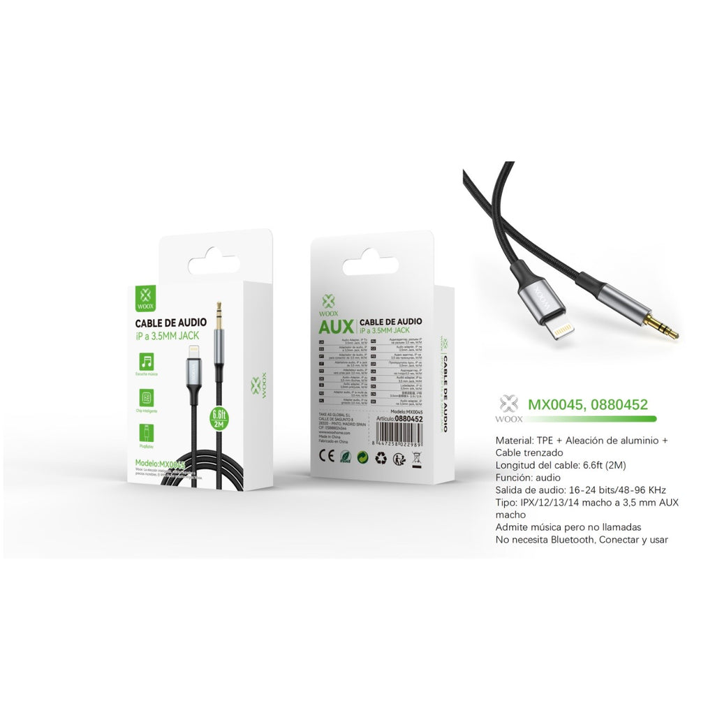 Cable de audio de 3,5 mm auxiliar a Lightning, Plug&Play, 2 m, negro - MX0045