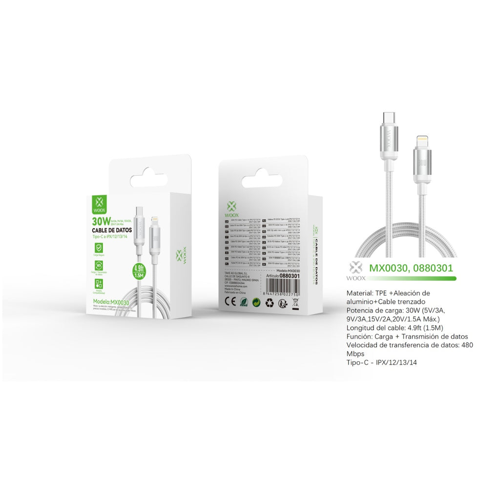 Cable de datos Tipo-C a Lightning 30W 1,5 m - blanco - MX0030 BL