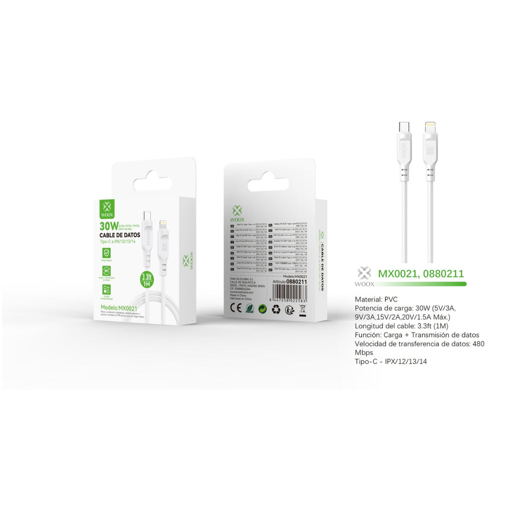 Cable de datos Tipo-C a Lightning 30W 1m -blanco - MX0021 BL