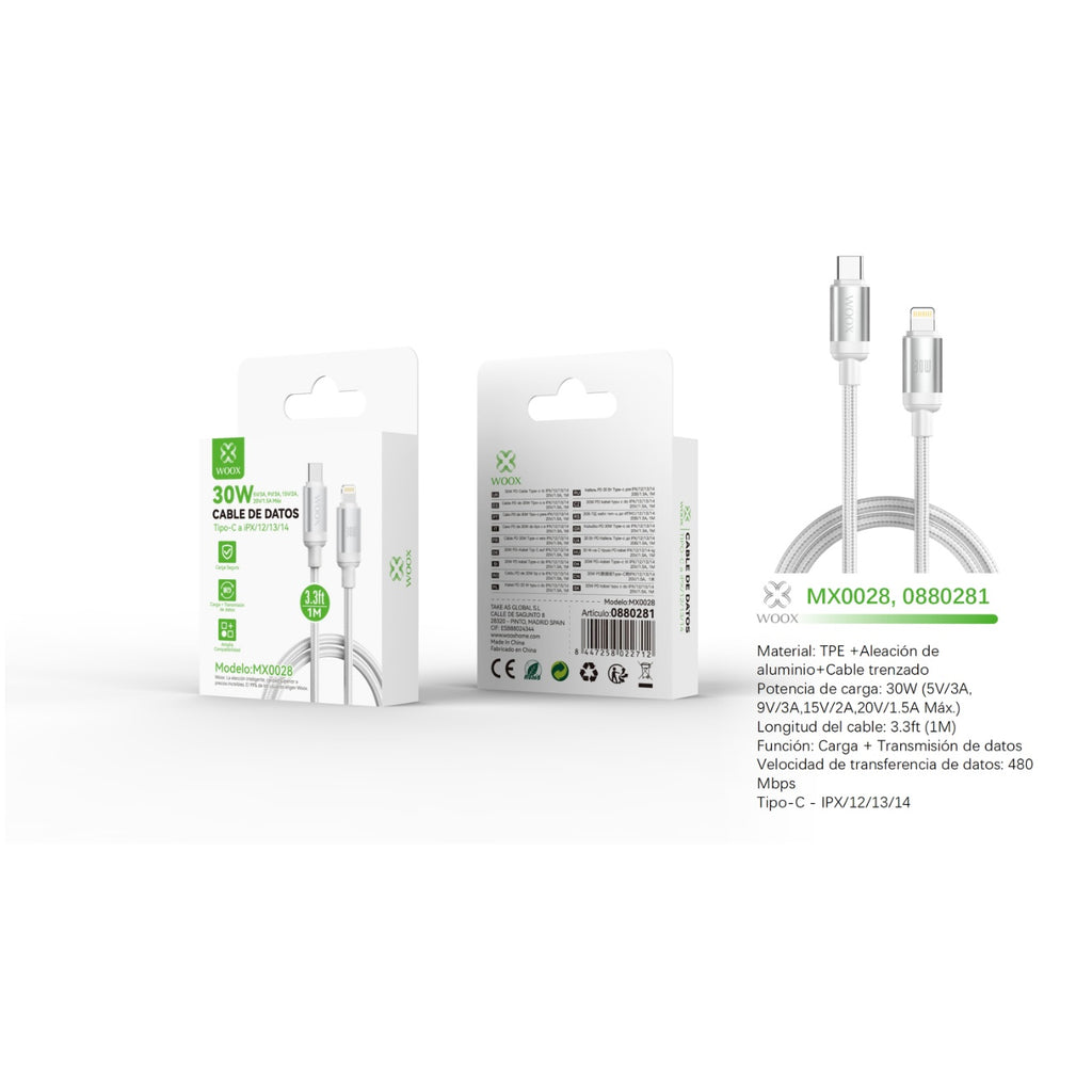 Cable de datos Tipo-C a Lightning 30W 1m - blanco - MX0028 BL