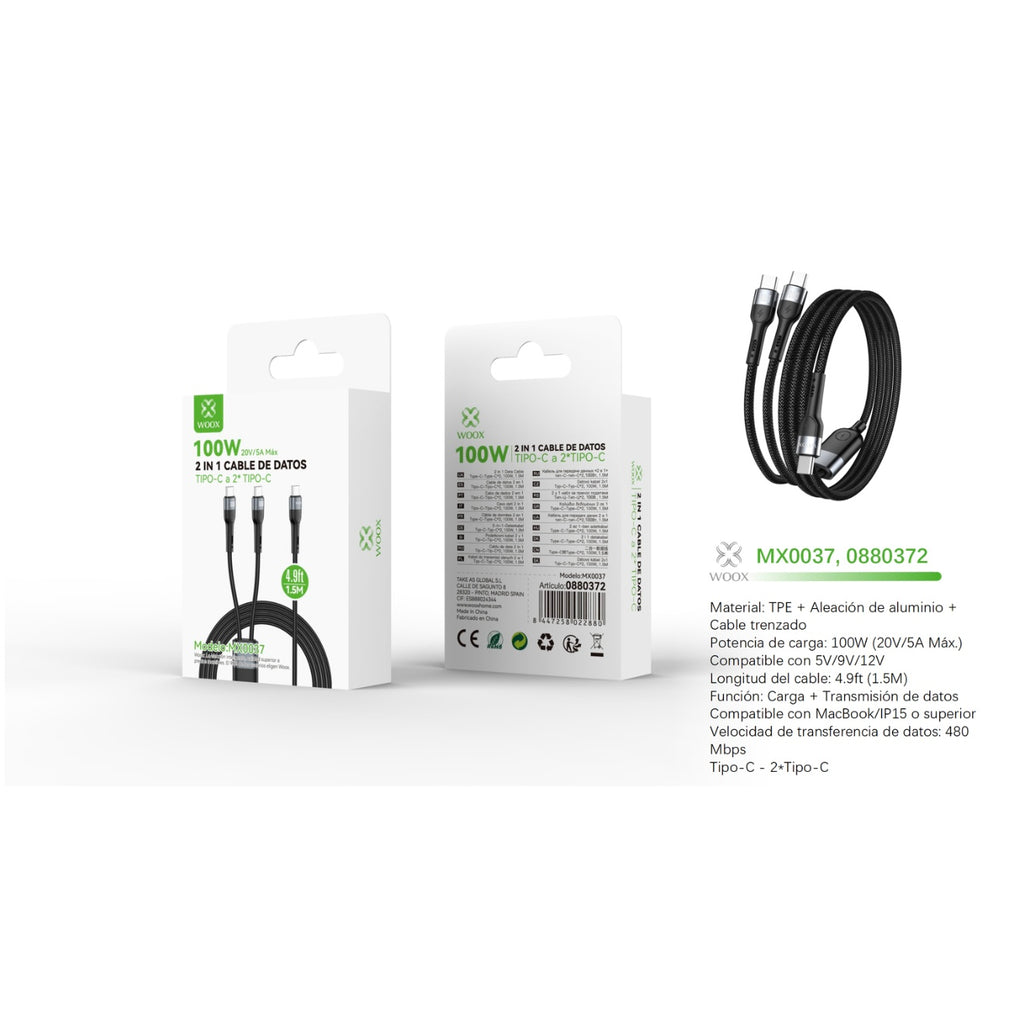 Cable de datos Tipo-C a Tipo-C 100W 1,5 m - MX0037 NE