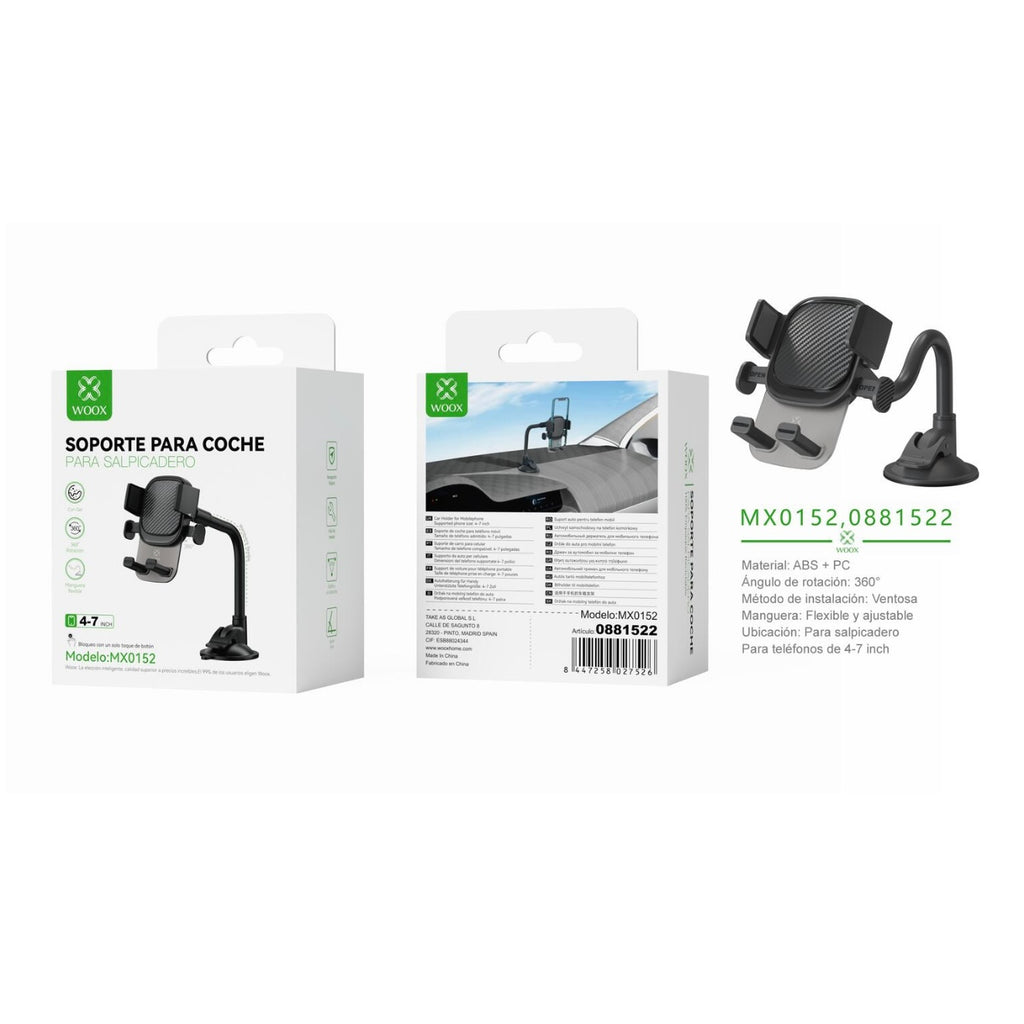 Soporte para telefono de coche para salpicadero y parabrisas (ABS de 4-7"), color negro - MX0152